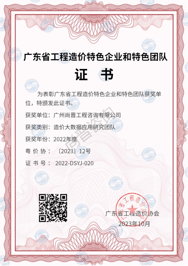 廣州尚晉工程咨詢有限公司(以下簡稱“尚晉咨詢“) 。具有建設部頒發(fā)的甲級工程造價咨詢資質、國家發(fā)展改革要頒發(fā)的工程項目管理資格證及廣東省工程建設招標代理資信A,是廣東省首批搭建大數據咨詢平臺進行全過程咨詢管控模式的公司之一,擔任廣東省工程造價協會理事單位、廣州市造價協會理事單位、廣東省建筑業協會理事單位等要職。 廣州尚晉工程...